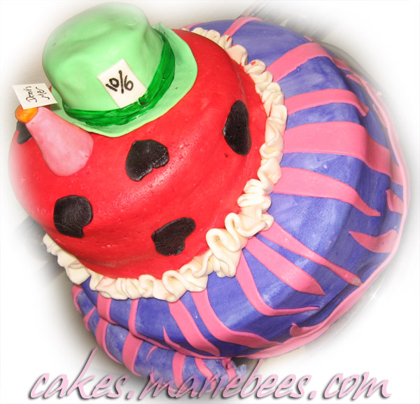 Year Birthday cake in the style of the Cheshire Cat, Queen of Hearts Bloomers,